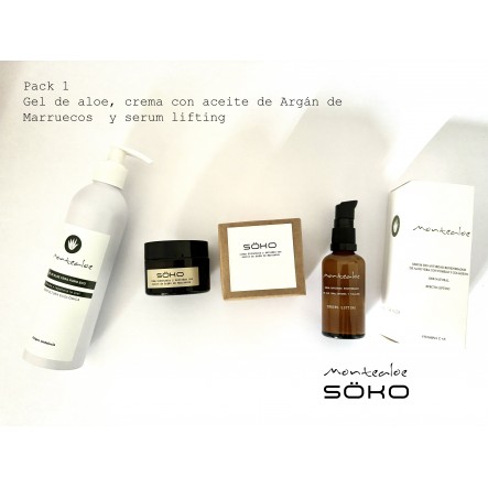 PACK TRATAMIENTO MONTEALOE( GEL PURO DE ALOE Y POMELO, CREMA BIO ALOE, LAVANDA Y ROSA MOSQUETA Y SERUM ALOE, POMELO Y COLÁGENO CON EFECTO LIFTING)